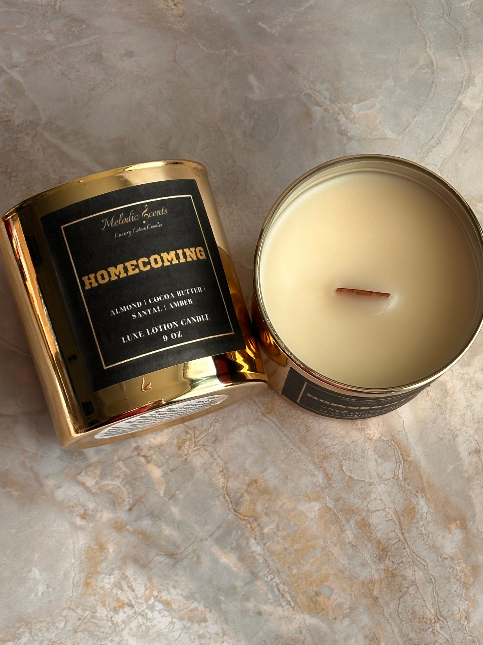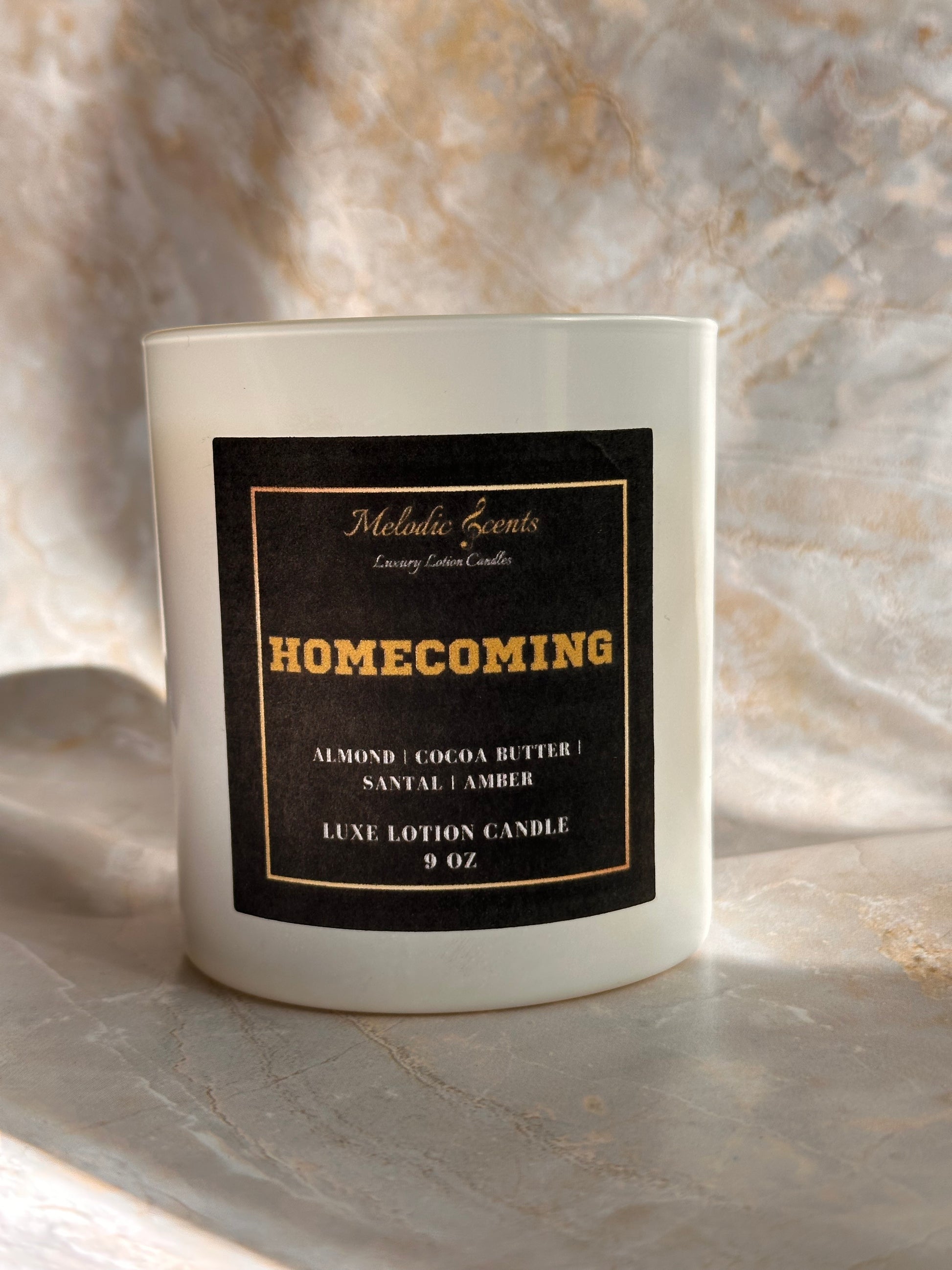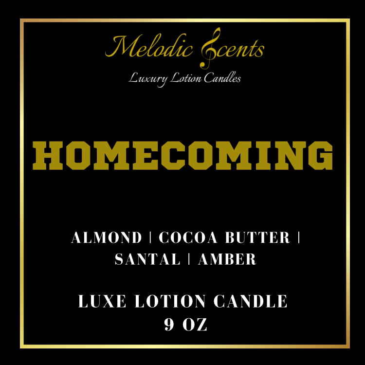 Homecoming is a cozy gourmand blend of rich almond, creamy cocoa butter, and warm santal amber, inspired by the joyful spirit of HBCU homecomings. This scent evokes cherished memories of gathering with friends, the sounds of marching bands, and the vibrant music from unforgettable parties. Like a classic anthem that takes you back, Homecoming wraps you in nostalgia, making you reminisce about the good times at your alma mater and the bonds that last a lifetime.